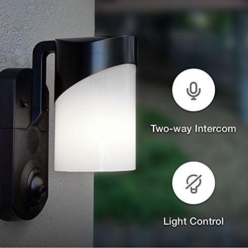 Meet the next generation in Home Security and Burglary Prevention: The Maximus Smart Security Light. This beautiful outdoor metal and glass wall lantern includes a 720P HD Video Camera and Smart Technology to live stream video from your home to your phone. Receive real-time notifications when a visitor is detected at your door. When motion is detected, push notifications are sent via our mobile app to your smart phone. Not only can you see who is at your door (from your phone), but you can communicate with these people via our live Intercom 2 way voice feature. You can speak live or send pre-recorded voice messages via your smart phone. With the push of a button, sound an alarm to deter burglars. Maximus supports iOS and Android devices. This light fixture also includes an Energy Star certified A19 450 Lumens bulb.