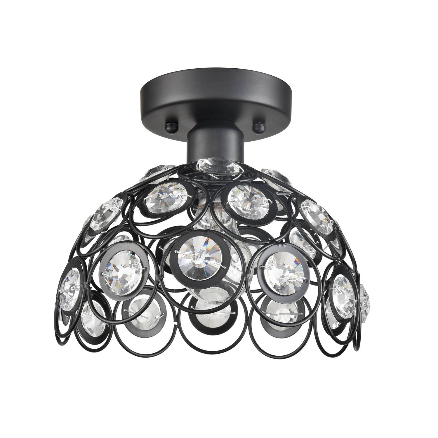 The Modern Jewel Crystal and Black Metal Semi-Flushmount Ceiling Fixture sparkles in virtually any room. Beatifully illuminates a bedroom, entry or hallway taking any design to the next level of elegance.
