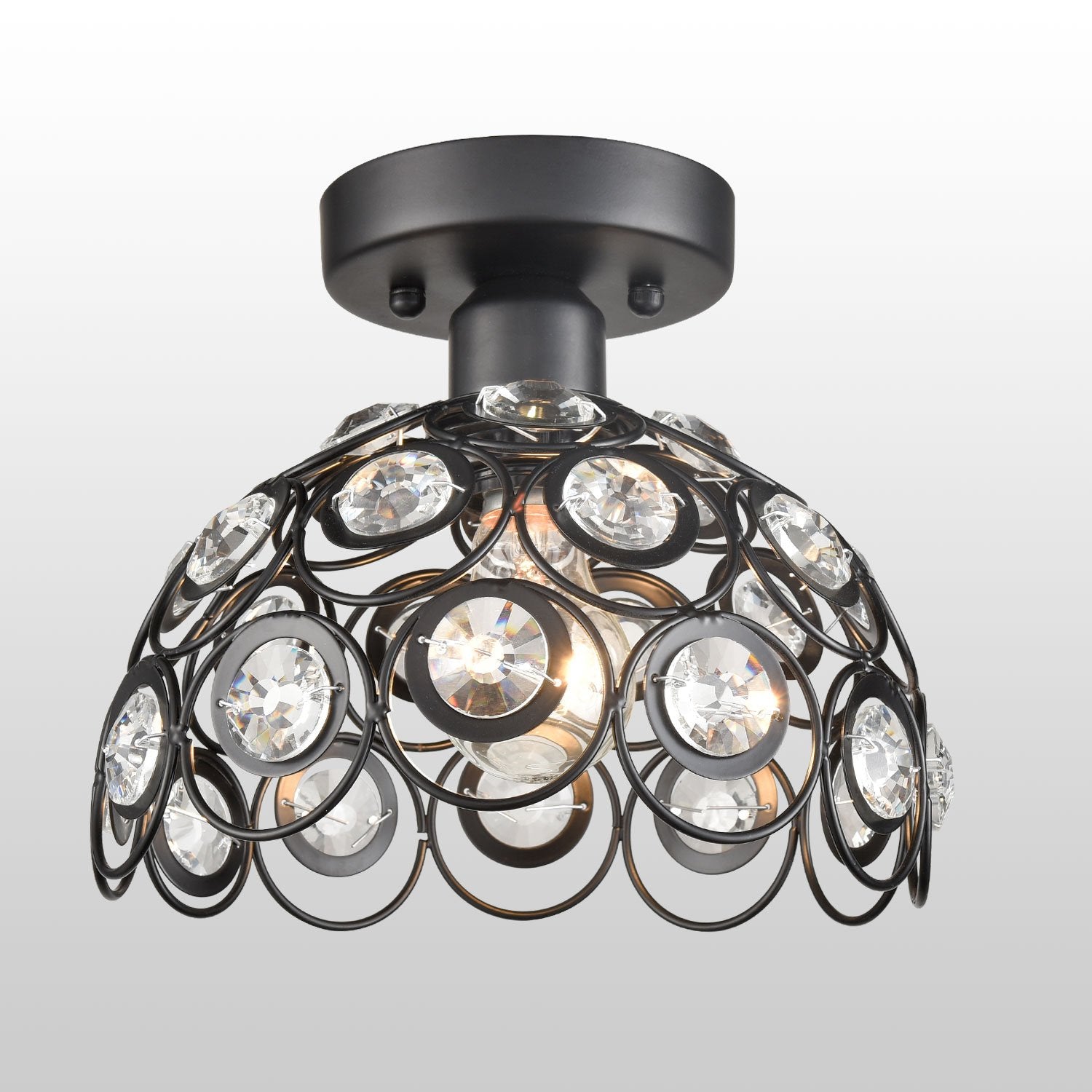 Modern Jewel Crystal and Black Metal Semi-Flushmount Ceiling Fixture