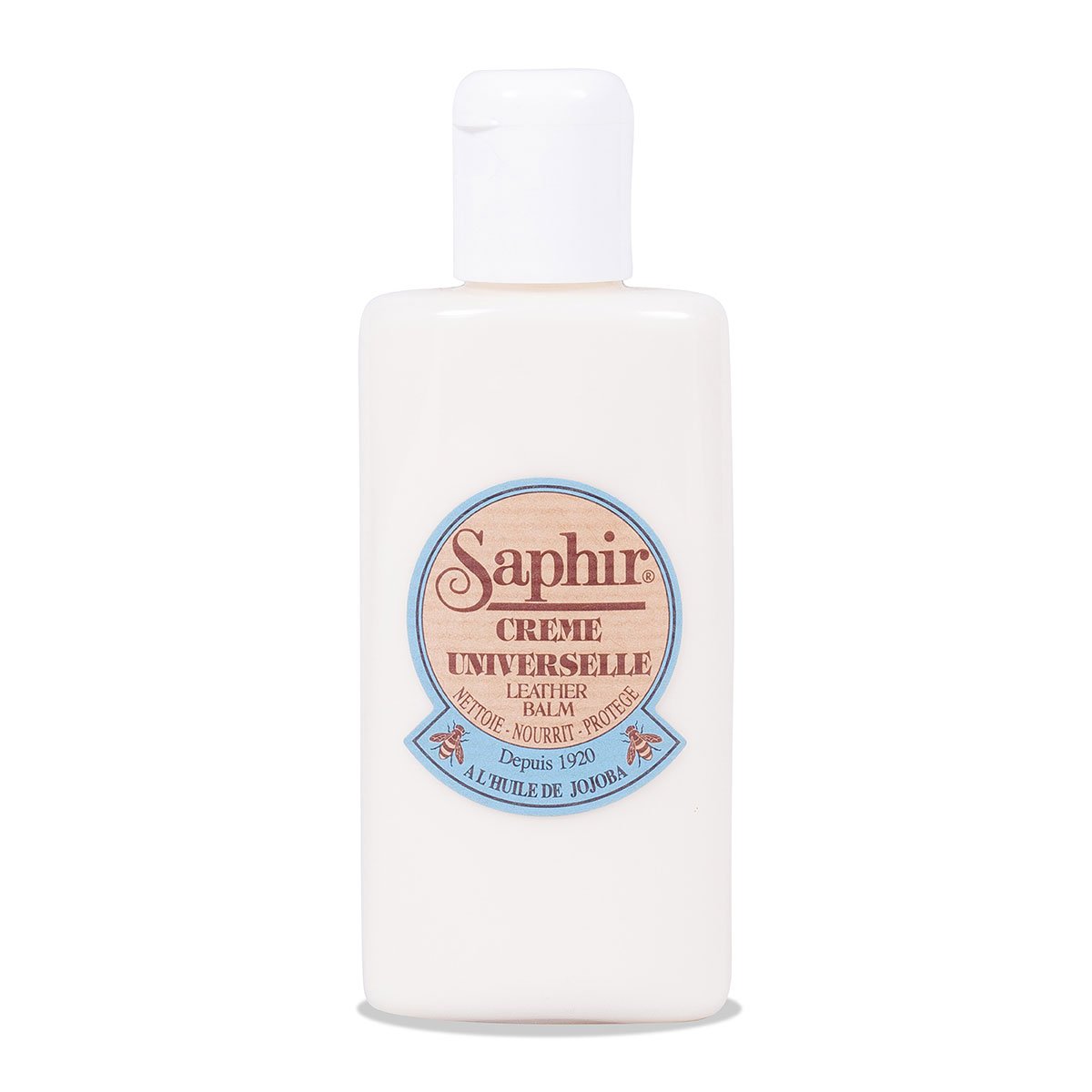 Creme Universalle by Saphir is the ultimate ‘all in one’ neutral conditioning balm. Designed for use on all leathers, this natural liquid formulation works like a moisturiser that can be applied on shoes, bags, clothing, furniture and luggage without altering the original pigments or finish. Creme Universall is a colour neutral all-in-one product that not only revitalises dry, damaged and discoloured areas, but also gently cleans, nourishes and lightly weather proofs your leather goods. Enriched with 29% beeswax and jojoba oil.