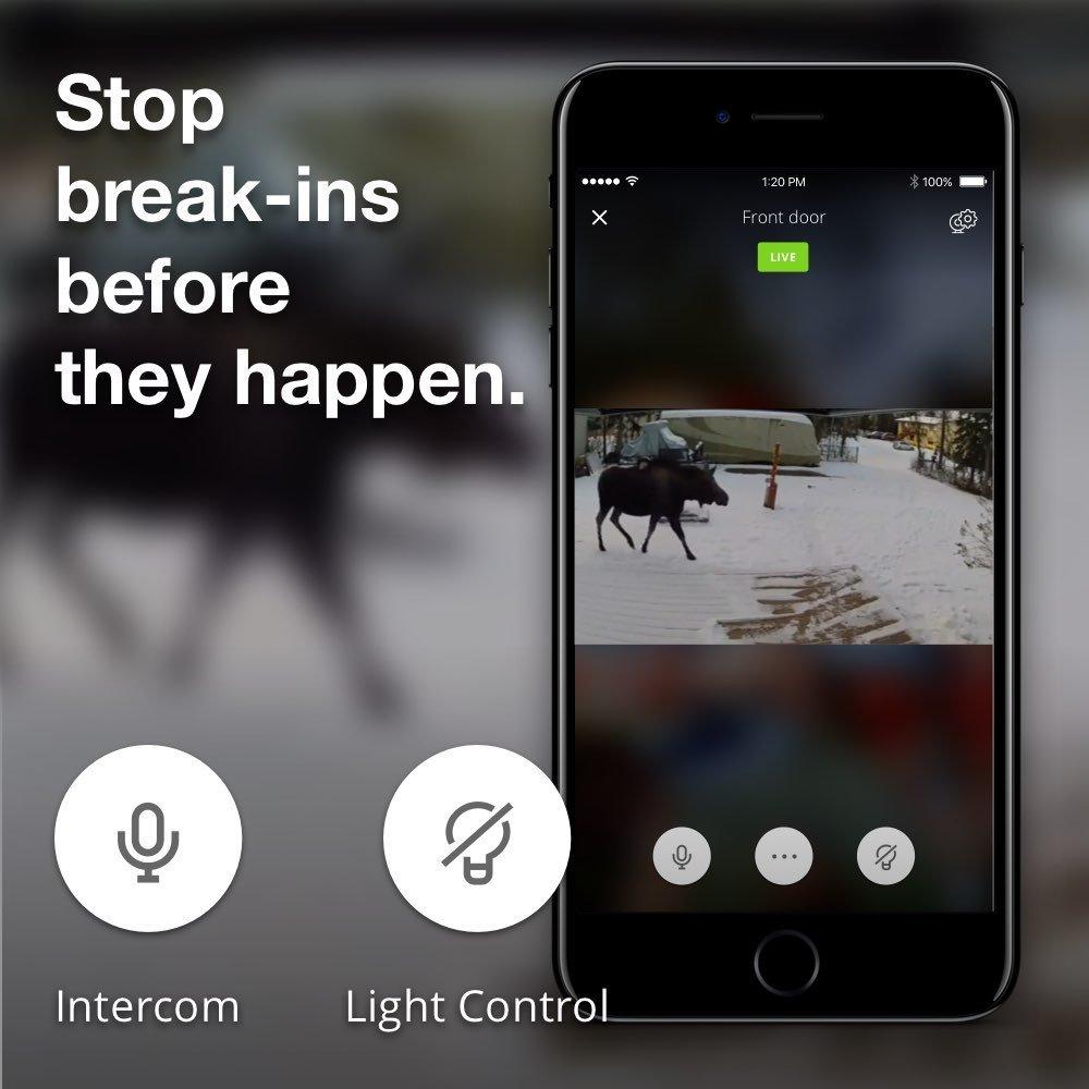 Meet the next generation in Home Security and Burglary Prevention: The Maximus Smart Security Light. This beautiful outdoor metal and glass wall lantern includes a 720P HD Video Camera and Smart Technology to live stream video from your home to your phone. Receive real-time notifications when a visitor is detected at your door. When motion is detected, push notifications are sent via our mobile app to your smart phone. Not only can you see who is at your door (from your phone), but you can communicate with these people via our live Intercom 2 way voice feature. You can speak live or send pre-recorded voice messages via your smart phone. With the push of a button, sound an alarm to deter burglars. Maximus supports iOS and Android devices. This light fixture also includes an Energy Star certified A19 450 Lumens bulb.