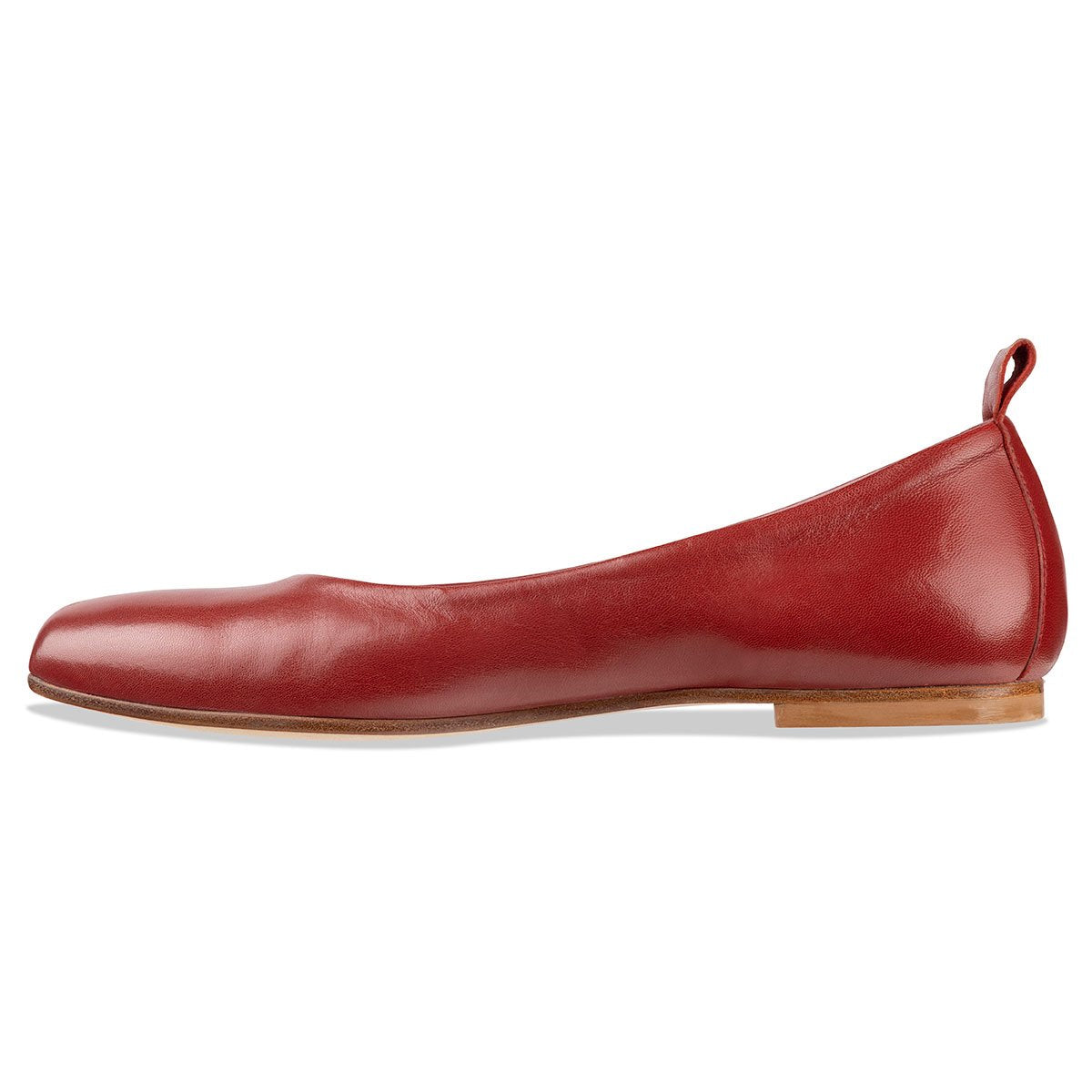 habbot ‘Romana’ ballet flats exude effortless style. With a classic low-profile silhouette and ‘en pointe’ chiselled toe, these feminine slip-ons, finished in supple Terracotta brown goat leather, features no stitch lines or unnecessary detailing. The refined shape, comfort and versatility of this classic ballet flat will transition easily with you throughout the coming seasons.