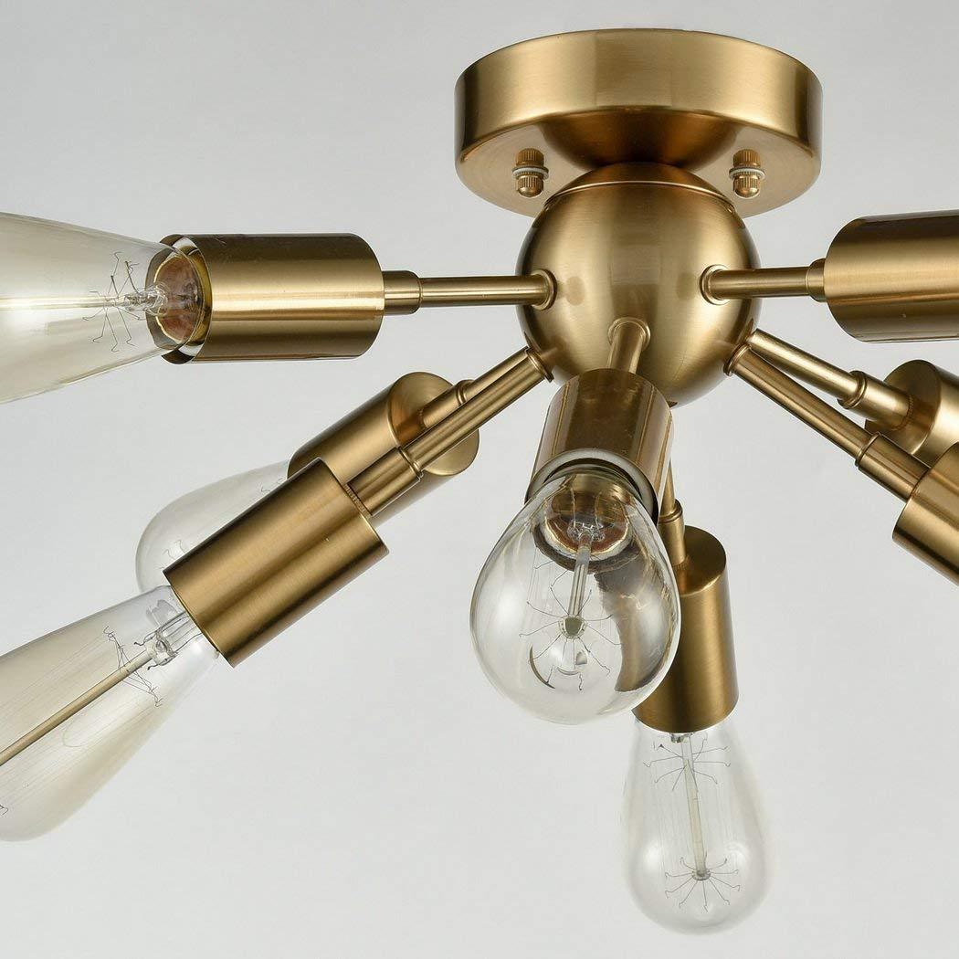* 8 socket sputnik flush mount ceiling light, antique brass finish