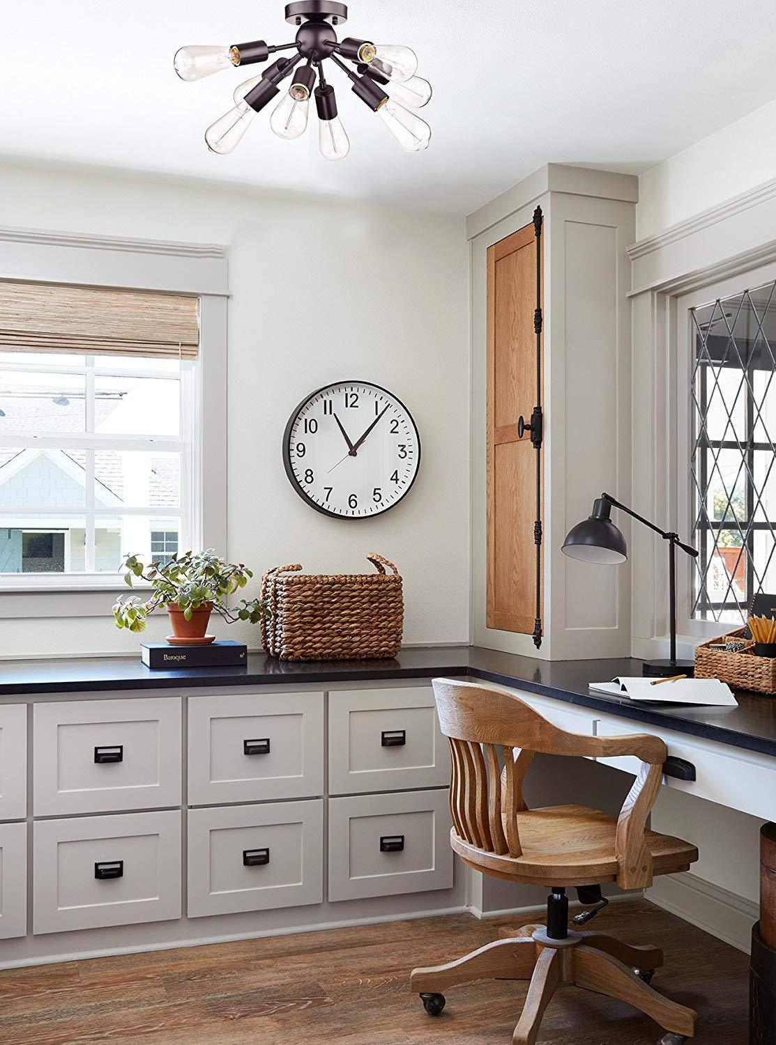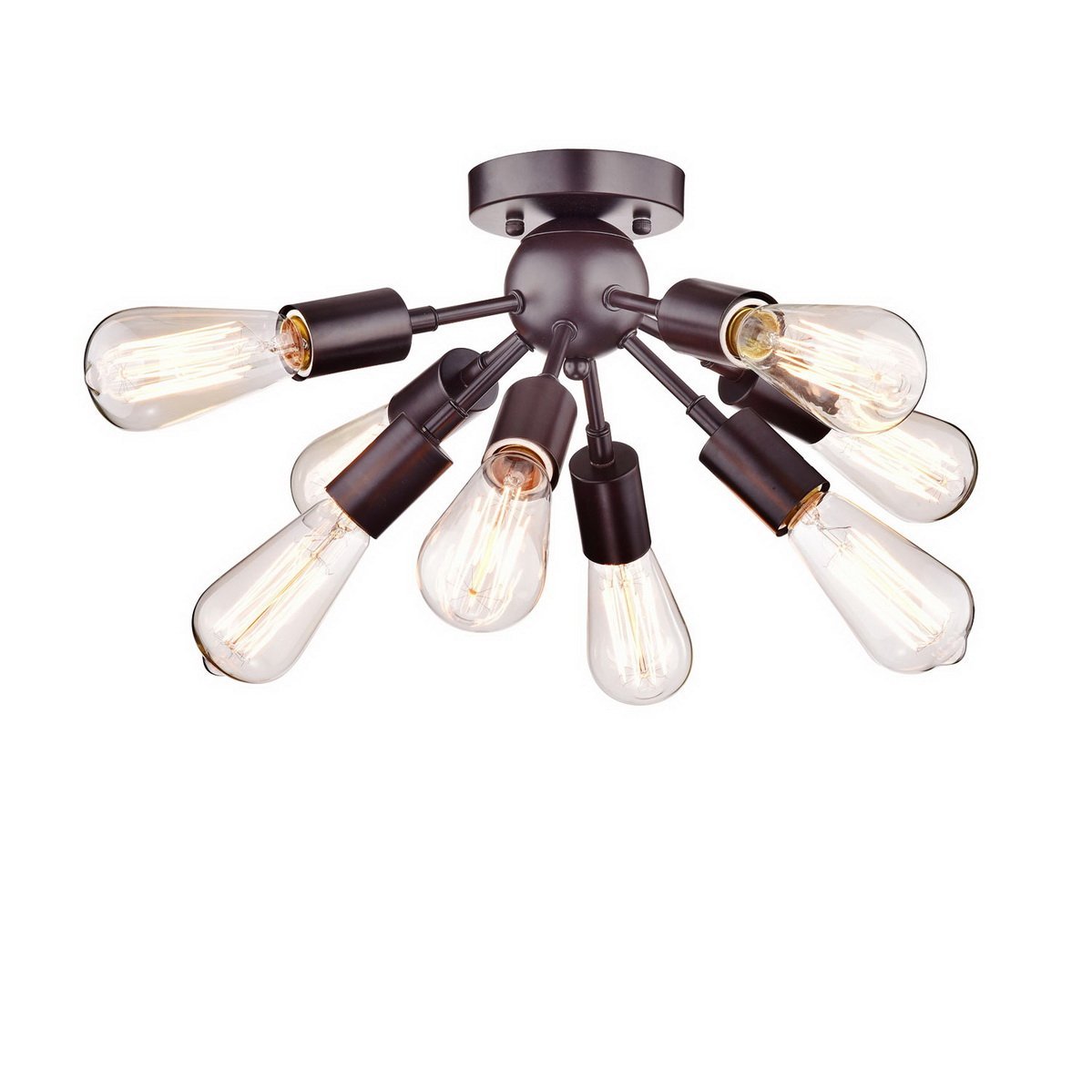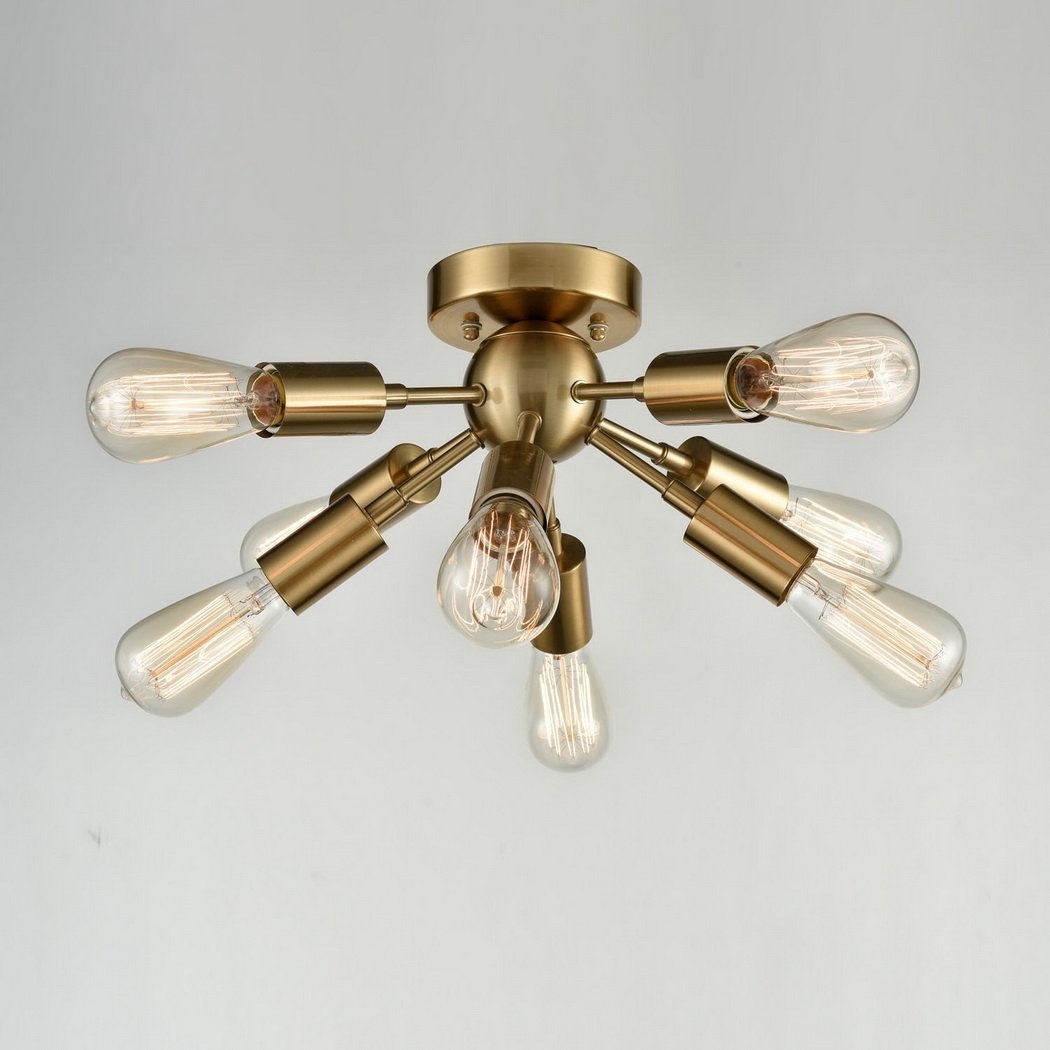 Add eye-catching style to your home with the vintage look of this antique brass ceiling light. The eight-light metal fixture features exposed Edison bulbs that give it an attractive industrial edge. Can also be mounted as a distinctive modern wall sconce. Eight energy-efficient LED bulbs are included with this fixture.